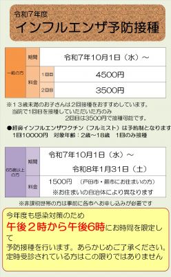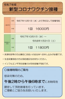 令和7年度インフルエンザ・新型コロナワクチン接種