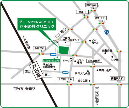 ・JR京浜東北線「蕨」駅西口よりバス11分「上戸田五丁目」バス停下車徒歩5分